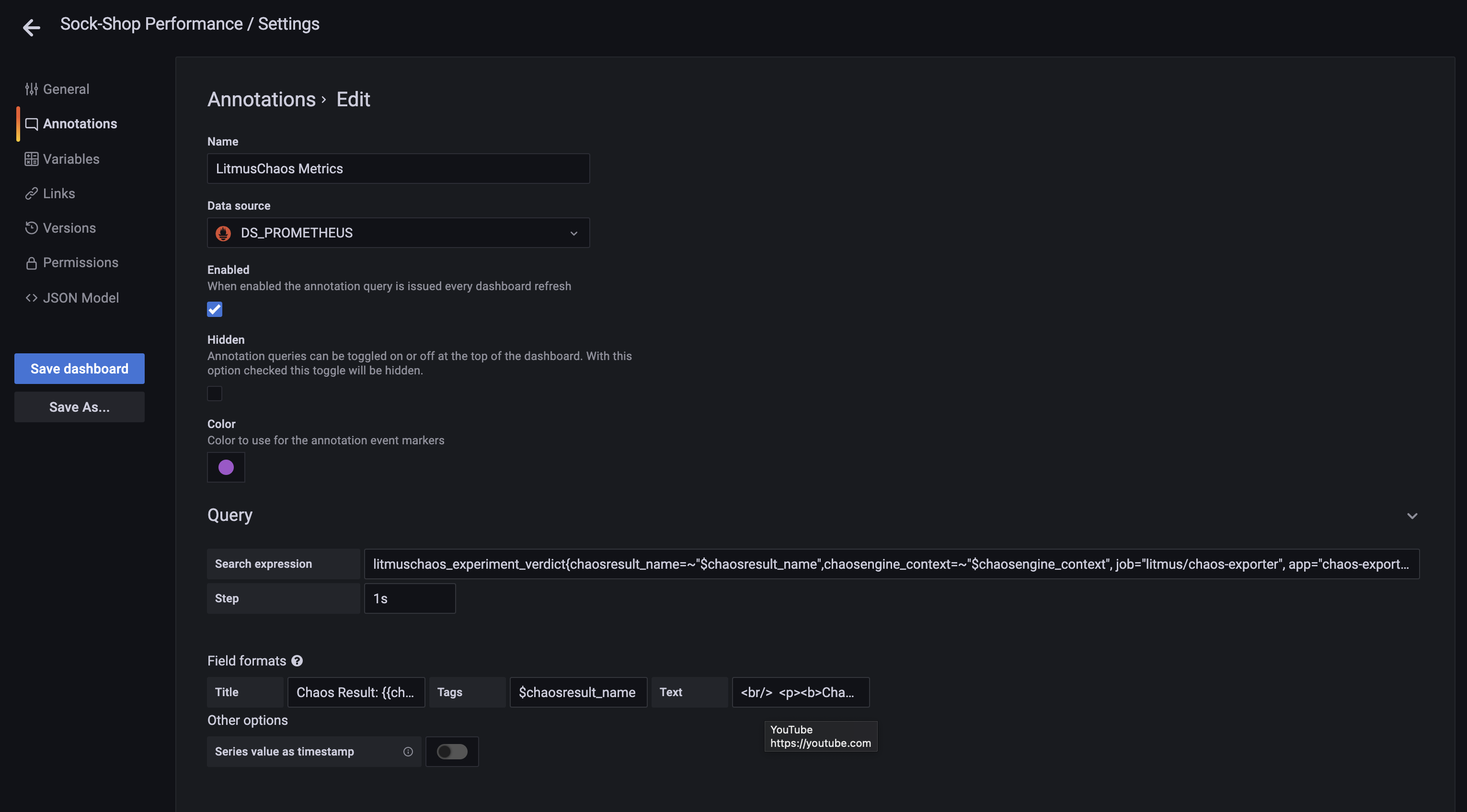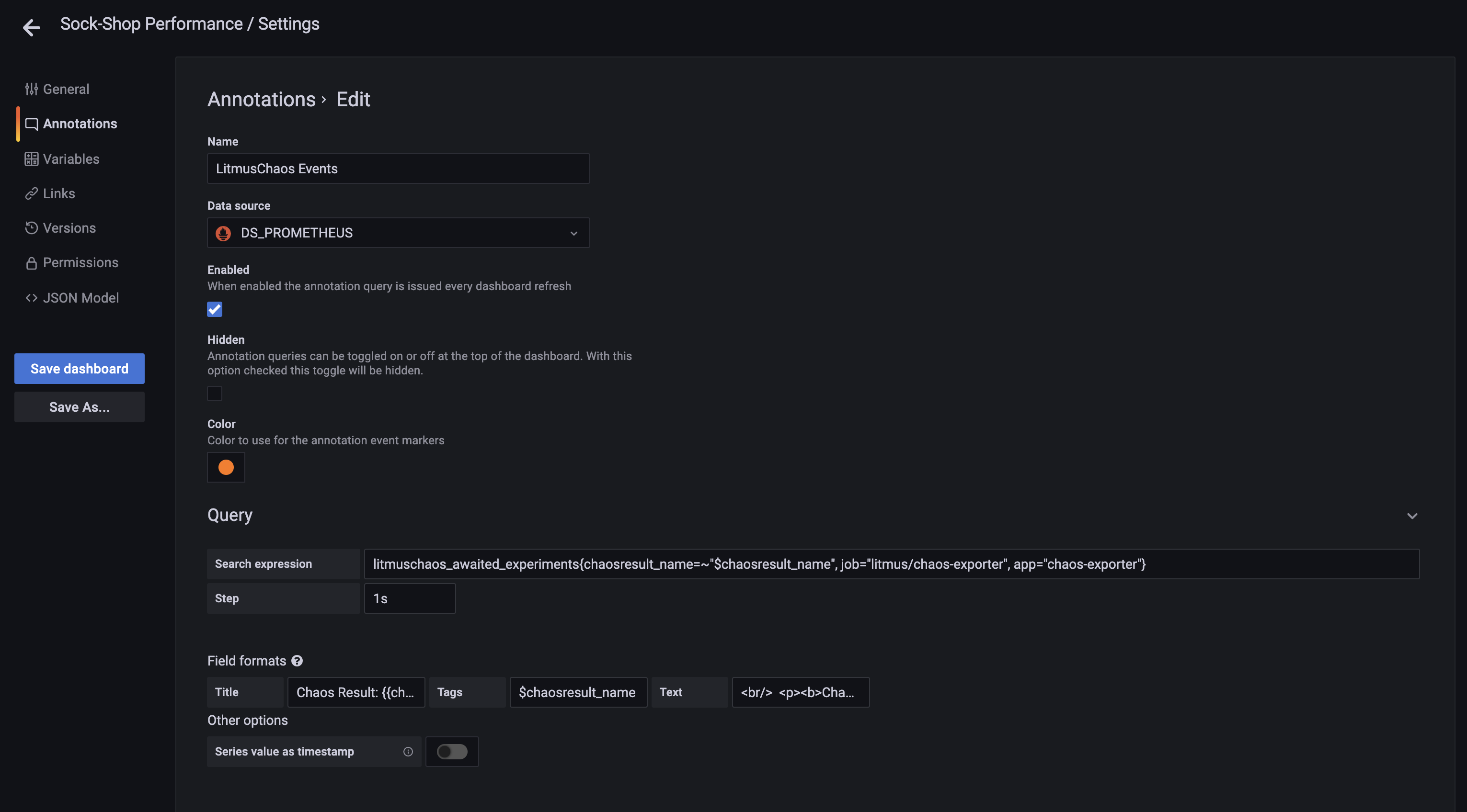 Chaos Engineering is the discipline of experimenting on a system to build confidence in the systemβs capability to withstand turbulent conditions in production. Monitoring a system's resilience and its performance under chaos are one of the fundamental principles of chaos engineering. Litmus has sample chaos interleaved dashboards available on Grafanaβs community dashboards as well as provisioned dashboards along with provisioned data sources. Some sample chaos interleaved dashboards can be found here