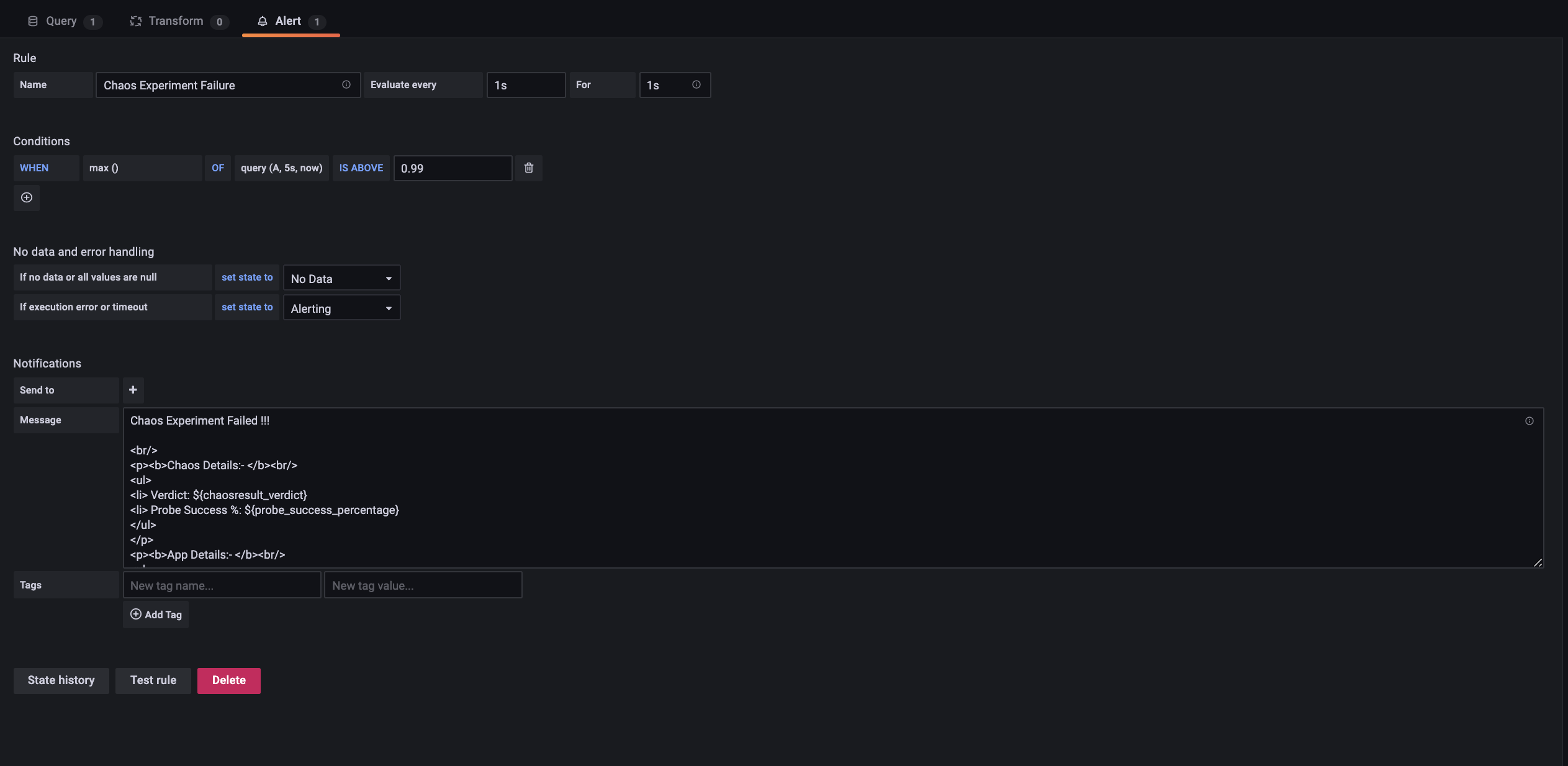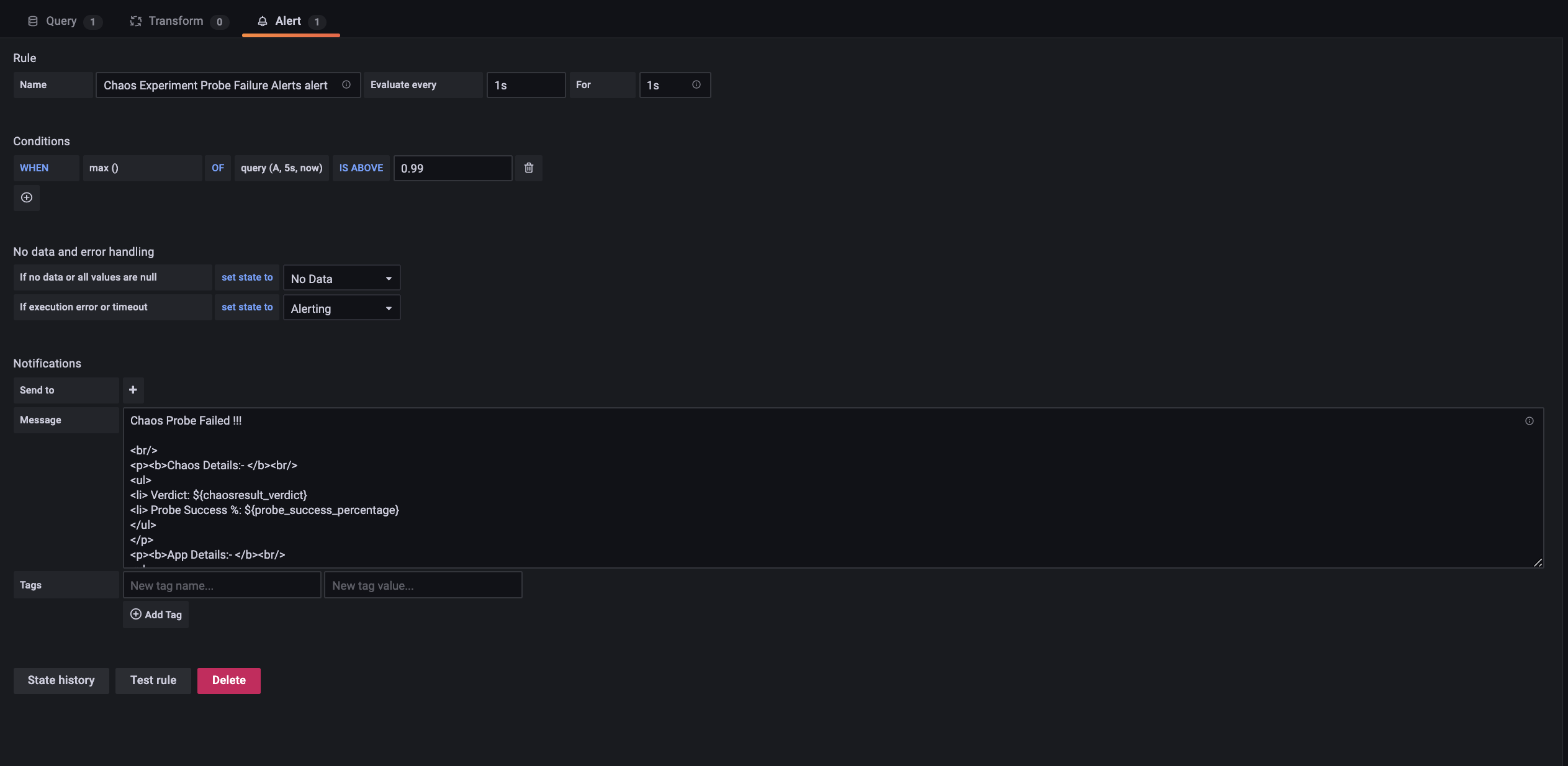 Probe failure alert configurationGauges from metrics for aggregated view of chaos injectionsβ